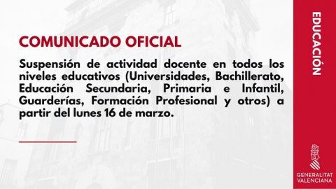 Acaba de anunciarlo el president de la Generalitat, XImo Puig, en una comparecencia que está produciéndose en este momento.