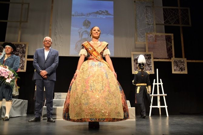 El presidente de Junta Local Fallera, Juan Salvador Pérez, recibió sobre el escenario a las componentes de la corte de honor, mientra que Safir Malonda desfiló acompañada por el alcalde de la ciudad, Vicent Grimalt, y escoltada por sendos policías locales con su uniforme de gala.