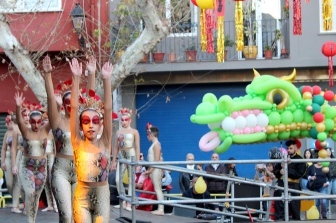Dragones y gheisas llenaron los rincones de la ciudad en un pasacalle que comenzó en la plaza del Consell y concluyó en la conocida como plaza del Oeste.