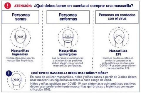 La Orden, que entra en vigor a partir del jueves 21 de mayo, señala que es también recomendable para los niños de entre 3 y 5 años y que preferentemente deberán usarse las mascarillas higiénicas y quirúrgicas, que cubran nariz y boca.