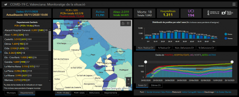 Por otra parte, la Generalitat ha informado en su comunicado que los hospitales valencianos tienen, actualmente, 1.321 personas ingresadas: 116 en la provincia de Castellón, con 23 pacientes en UCI; 456 en la provincia de Alicante, 73 de ellos en la UCI; y 749 en la provincia de Valencia, 113 de ellos en UCI