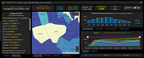 Por otra parte, la Conselleria ha informado que a fecha de este viernes hay  1.572 personas ingresadas: 139 en la provincia de Castellón, con 19 pacientes en UCI; 506 en la provincia de Alicante, 98 de ellos en la UCI; y 927 en la provincia de Valencia, 146 de ellos en UCI.
