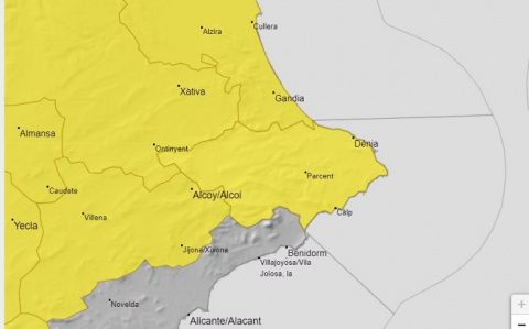 La Agencia Estatal de Meteorología ha activado la alerta amarilla por fuertes lluvias en la Marina Alta para todo este domingo 23 de mayo.