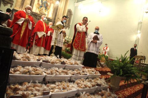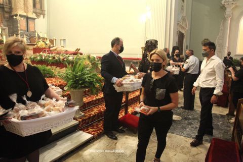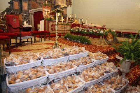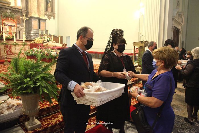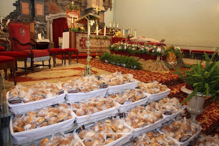 Tras la celebración religiosa el párroco ha benedicos los panes que han sido repartidos entre los asistentes.