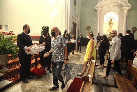 La cofradía, los mayorales y las mayorales, junto a la Junta Local Fallera y numerosos vecinos han participado esta miércoles en la celebración religiosa en honor a la Santíssima Sang en la parroquia de la Asunción, cumpliendo todas las medidas de seguridad que exige la pandemia y todos ellos con mascarilla.