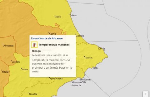 La Agencia Estatal de Meteorología ha activado la alerta naranja por altas temperaturas para este  lunes 12 de julio, en toda la Marina Alta, y sube a roja en la Safor y la Marina Baixa.