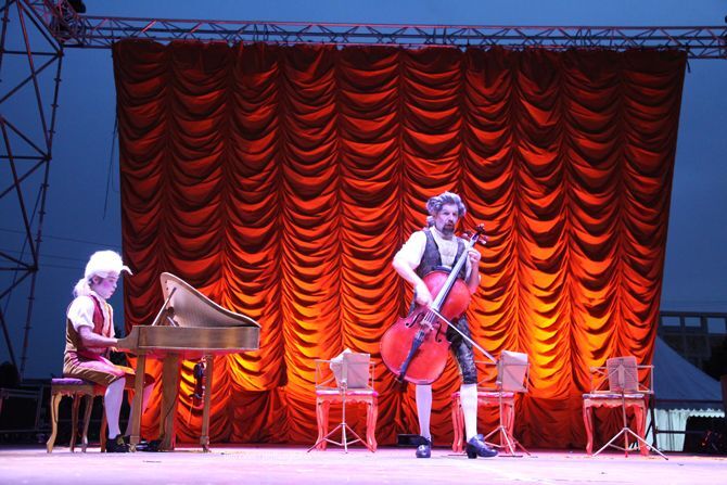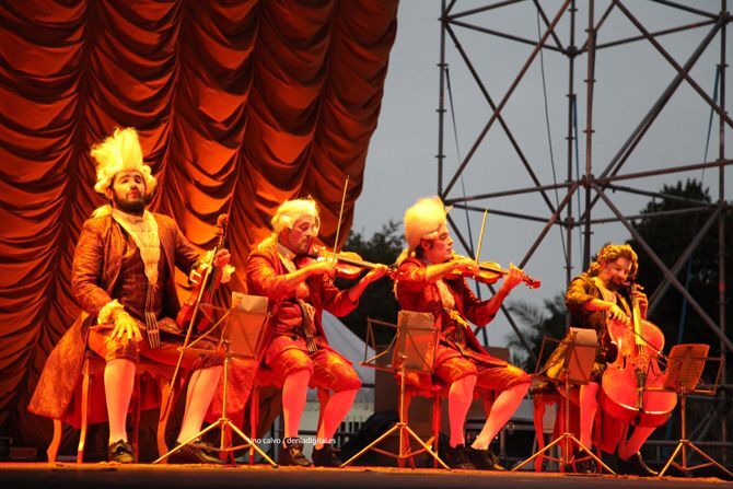 Este domingo el escenario del Festiu2021 de Dénia acogió el espectáculo Maestrissimo de la compañía Yllana, que narra las aventuras y desventuras de un cuarteto de cuerdas en un periodo indeterminado entre los siglos XVII y XVIII, las épocas musicales conocidas como el Barroco y el Neoclasicismo.