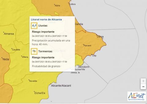 La Agencia Estatal de Meteorología ha activado la alerta amarilla por altas temperaturas para este viernes y el sábado, en toda la Marina Alta.