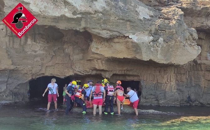 Según ha informado el Consorcio Provincial de Bomberos, la mujer ha bajado del kayak en el que ha alcanzado la cueva, y ha sufrido un resbalón en una de las rocas de entrada a la cavidad. Una caída que le ha provocado una lesión en la tibia y el peroné,