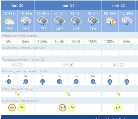 La Agencia Estatal de Meteorología ha activado la alerta amarilla por fuertes lluvias y posibilidad de granizo para el miércoles día 1 de septiembre en toda la Marina Alta.