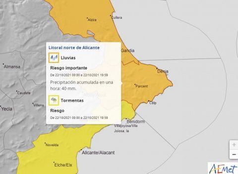 Aemet activa la alerta naranja por lluvias en la Marina Alta