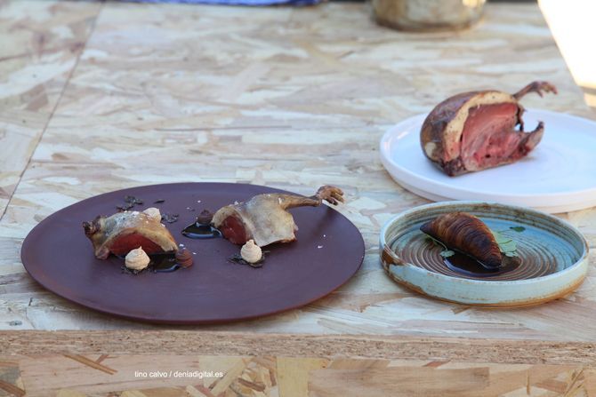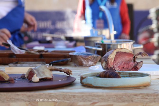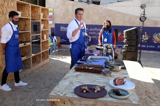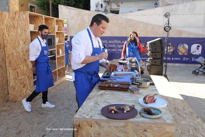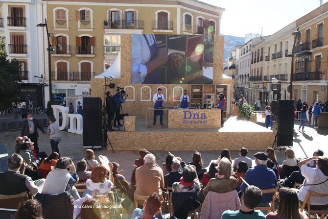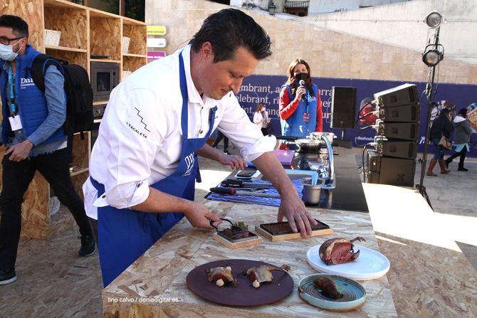 El cocinero tres estrellas Michelin y Comisario del DNA, Quique Dacosta clausuró el certamen con un showcooking en la plaza del Consell, en el que demostró sus dotes culinarias, con productos de la tierra y el mar. Unas preparaciones en las que no faltó la gamba roja de Dénia.
