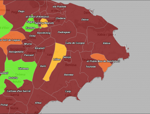 17 localidades de la Marina Alta en riesgo extremo de contagio de Covid-19