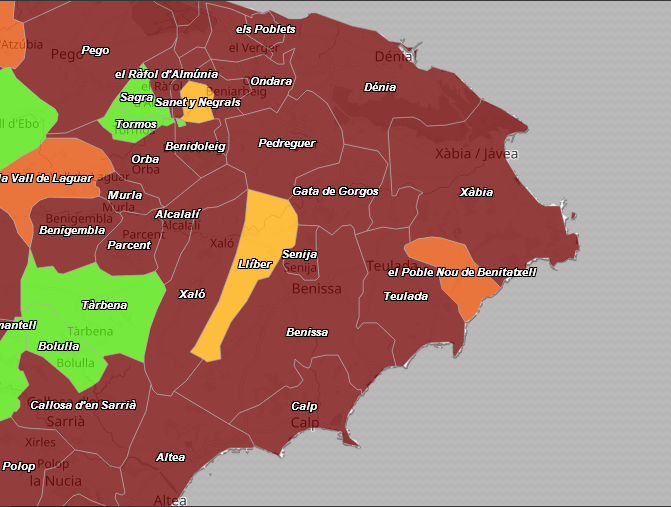 Pego ha notificado 63 nuevos positivos, Benissa 58, Calp 48, Ondara 40, Teulada Moraira 31, 31 Pedreguer, El Verger 29 y Orba 21. Las poblaciones más cercanas a Xàbia de Gata de Gorgos y El Poble Nou de Benitatxell han notificado 13 y 2 casos respectivamente.