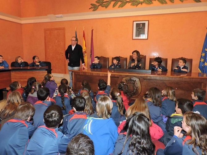 Los dos grupos de 3.º de Primaria del colegio Maristas han visitado hoy el ayuntamiento acompañados por sus profesores.