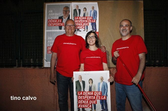 Los candidatos de Dénia pegan sus carteles electorales