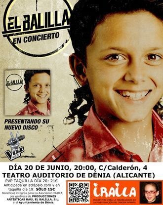 El concierto está organizado por "Iraila iniciativas para la financiación de la investigación del cáncer entre los más pequeños" y la concejalía de Cultura. Esta es una organización creada por la familia de una pequeña valenciana amante de la música y que participó en el programa la Voz Kids, pero que no pudo llegar al final pues el cáncer se cruzó en su corta vida.