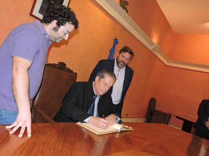 El exdirector general a ha firmado en el libro de honor de la ciudad y ha sido obsequiado con el facsímile del Título de Ciudad, editado por el Ajuntament de Dénia con motivo del 400 aniversario de la concesión del privilegio real a Dénia.