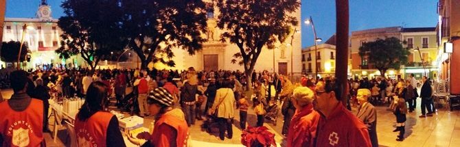 Aprovechando la recogida de cartas por parte de los carteros reales de  Papa Noel en la Plaza de la Constitució, la Mesa Solidaria compuesta por, Asociación Extiende tú mano, Cruz Roja, Cáritas y el Ejército de Salvación