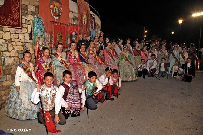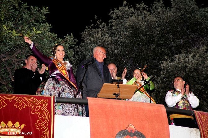Las falleras mayores de Dénia Marina Melgarejo y Alejandra Pastor llamaron a la fiesta a todos los falleros y vecinos de la ciudad, durante la cridà. Momentos antes el artista fallero, Enric Ginestar, invitó a todos a sumarse con un discurso en el que evocó la historia de un niño que quería ser artista.
