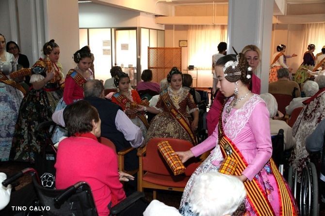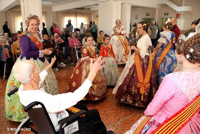 Por la mañana, las falleras mayores visitaron la residencia Santa Lucia y trasladaron el espíritu festivo a todos los residentes que allí viven.