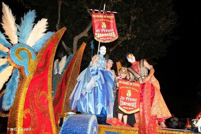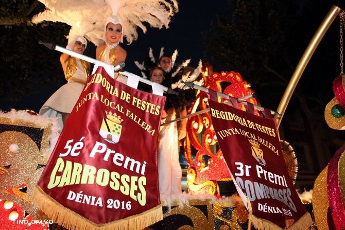 La Falla Centro logra el primer premio, en segundo lugar quedó Campaments y terceros fueron los falleros de Oeste. En la categoría la categoría infantil de Carrozas y Comparsa ganó Baix La Mar, mientras que la Comparsa grande fue la Falla Campaments.