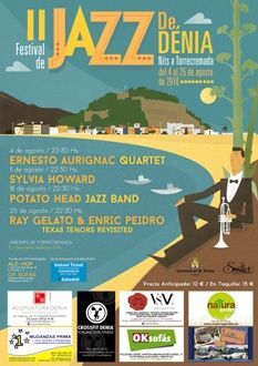 En la segunda edición del Festival de Jazz de Dénia actuarán los grupos Ernesto Aurignac Quartet (4 agosto) Potato Head Jazz Band (18 de agosto) y los solistas Sylvia Howard (11 de agosto) y Ray Gelato&Enric Peidro (25 de agosto)