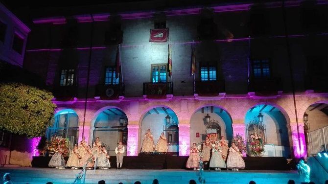 El acto fue conducido por Ramón Colomo y tras recibir el presidente de la Junta Local Fallera, José Antonio Monsonís, a las dos cortes de honor: la infantil con siete niñas y la mayor con cuatro jóvenes. Subieron al escenario las dos protagonistas: Inés y Mar, acompañadas por el alcalde, Vicent Grimalt.