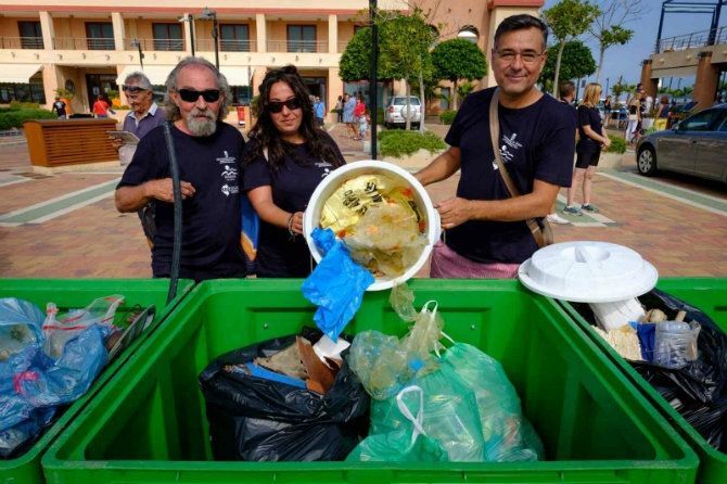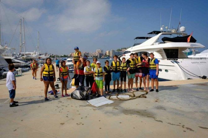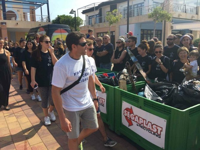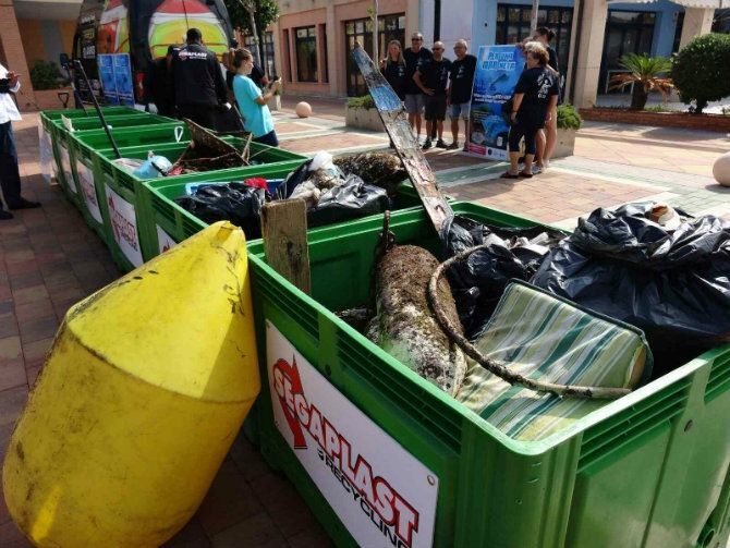 Sobre las 12.30 horas, los participantes se reagruparon en Marina de Dénia para depositar los residuos recogidos en los contenedores dispuestos por la empresa Segaplast.