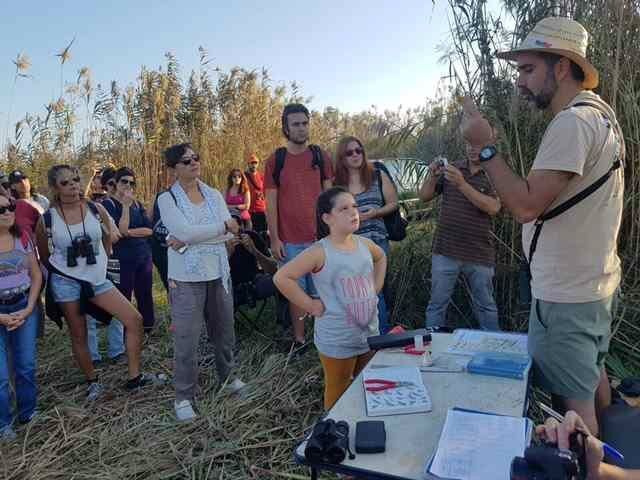 Por la tarde, un grupo de 40 participantes se desplazó hasta el parque natural de la Marjal de Pego-Oliva, donde realizaron una ruta de interpretación por la zona del río Salinar y observaron el anillamiento de aves que estaba realizando el doctor Atiénzar.