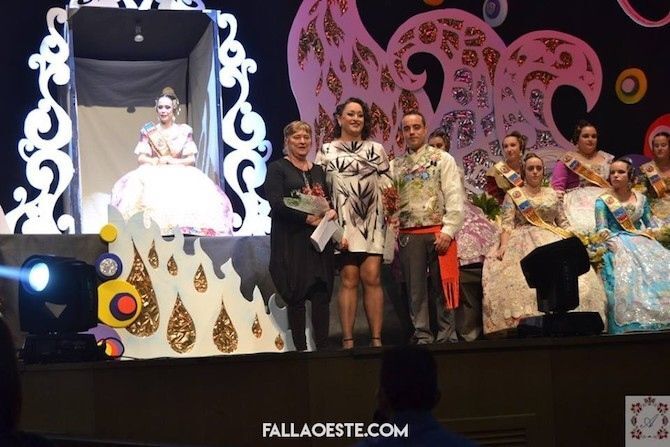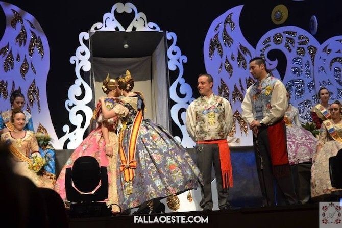 I va arribar un dels grans moments de la nit, quan la presentadora i dona del president de la Falla Oeste va cridar a l’escenari a Javi Jiménez i Cardona que va pujar per esperar l’arribada de la seua Fallera Major.