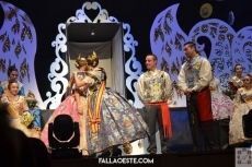 La Fallera Major 2016, Tania Carrió i Àvalos, acompanyada pel seu president Rubén Flores i Motilla, van ser els encarregats de pujar a imposar la banda a Laura que l’acredita com a Fallera Major 2017. Ací Tània va dedicar unes paraules per acomiadar el seu regnat i passar el relleu a Laura.
