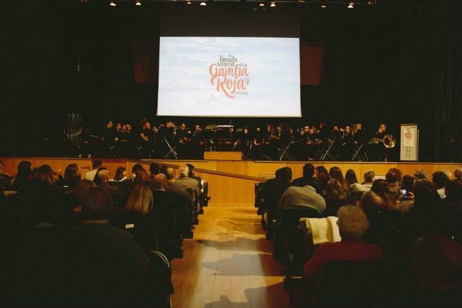 El Centro Social de Dénia se llenó la noche del sábado con motivo del estreno de “La banda sonora de la gamba roja de Dénia” interpretada por la Agrupació Artística Musical de Dénia.