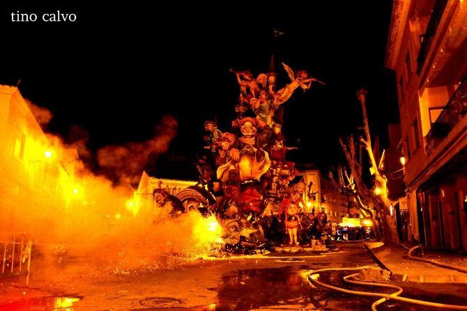El monumento de la falla ardió a altas horas de la madrugada como manda la norma fallera para el primer premio de especial.