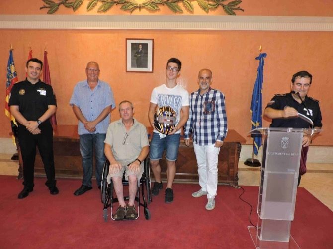 El acto ha sido conducido por el agente Manuel Moreno Mas, coordinador del curso, y ha contado con la asistencia de Salvador Climent Olmedo, de la asociación de lesionados medulares ASPAYM, Pedro Castells Ruano, miembro de la Asociación Provincial de Autoescuelas de Alicante, Juan José Sala Soler, técnico de la Unidad de Prevención Comunitaria en Conductas Adictivas de Dénia (UPCCA) y Mª Carmen Requena Cases, de la Asamblea Local de la Cruz Roja de Dénia, colaboradores de la iniciativa, quienes también han recibido un diploma de agradecimiento y un recuerdo del curso.