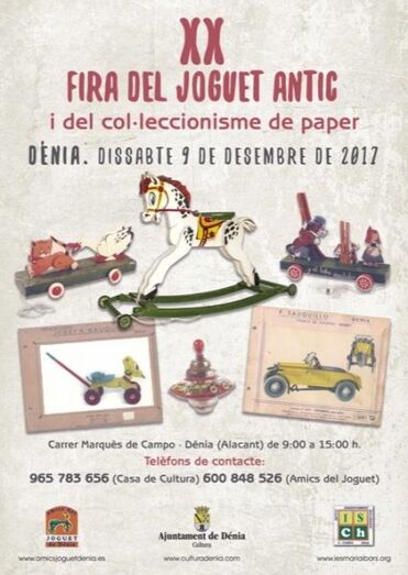 El próximo 9 de diciembre se celebra la vigésima edición de la Feria del juguete antiguo y de coleccionismo de papel que organiza la asociación Amics del Joguet de Dénia con la colaboración de la Concejalía de Cultura.