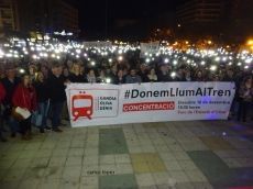 Allí fueron convocados para una concentración bajo el lema “Donem Llum al tren” y poner algo de luz con sus smartphones en una alegoría de la oscuridad que pende sobre este proyecto. Muchos anuncios, muchos planes, pero hoy por hoy poco o nada dinero para ponerlo en marcha.