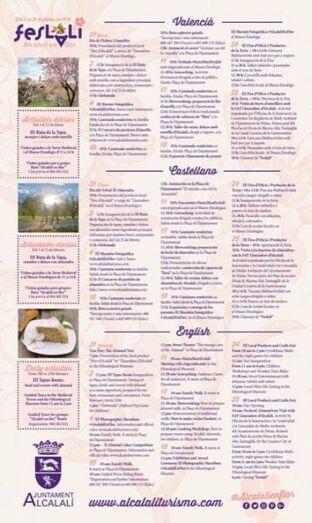 Para ello se han dispuesto una serie de actividades en las que pequeños y mayores podrán disfrutarla con los cinco sentidos. Toda la programación está disponible en www.alcalali.es y www.alcalaliturismo.com en castellano e inglés.