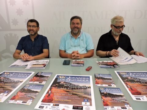 El artista junto con el concejal de Cultura, Rafael Carrió, el director de Marina de Dénia, Gabriel Martínez han presentado hoy esta exposición en las instalaciones del puerto deportivo de Dénia.
