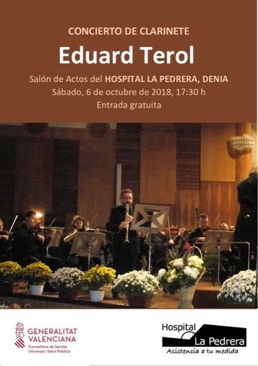 El próximo día 6 de octubre (sábado) a las 17:30 de la tarde en Dénia, excelente oportunidad para escuchar a Mozart con la audición del Concierto en La mayor para clarinete y orquesta a cargo del compositor y clarinetista EDUARD TEROL como solista, y del músico y compositor de Dénia, JORDI ORTS con su obra para clarinete “El donyet de la Mariola”. La entrada es libre y gratuita para todo el público.