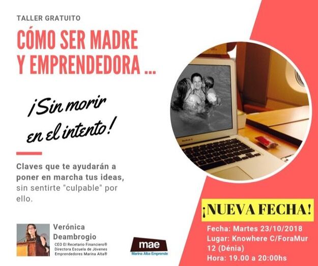 El martes 23 de octubre el espacio Knowhere de Dénia organiza una charla titulada como ser madre y emprendedora y no morir en el intento.