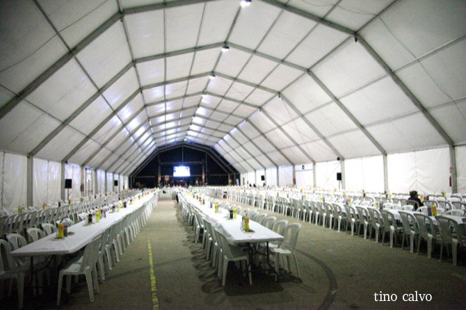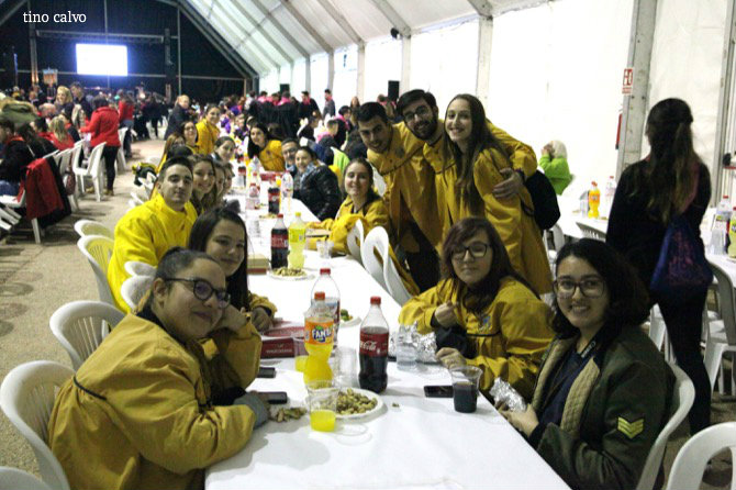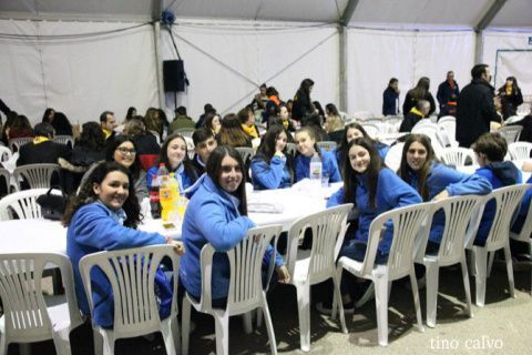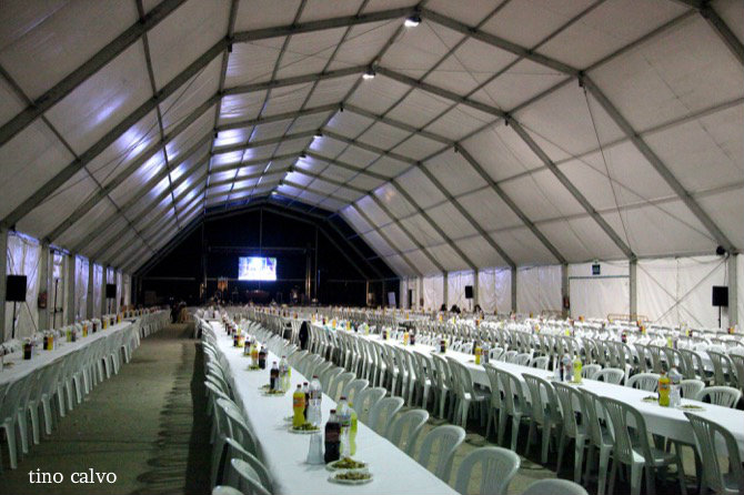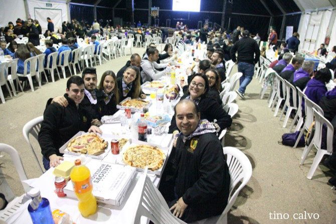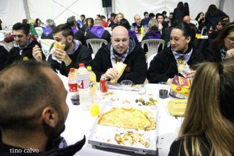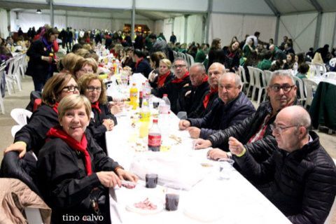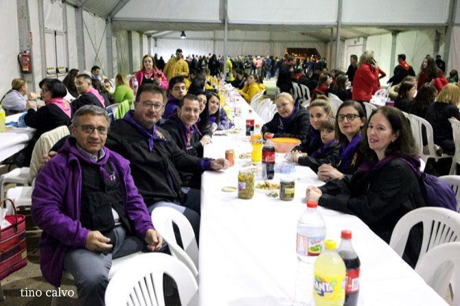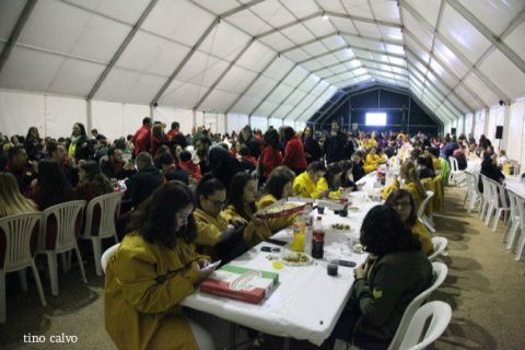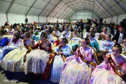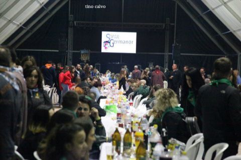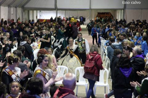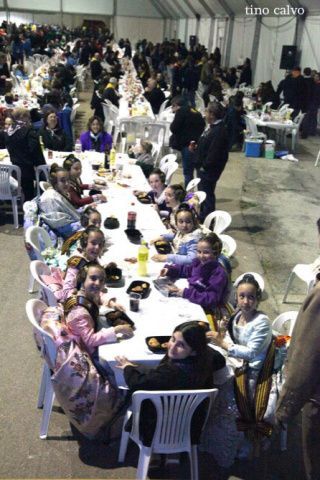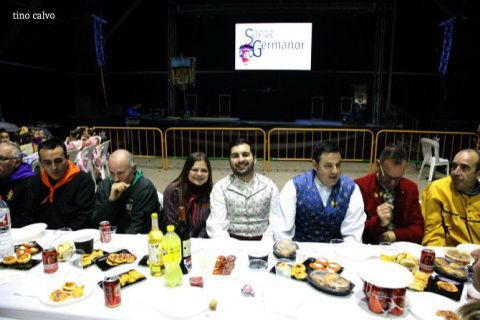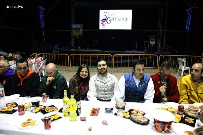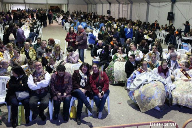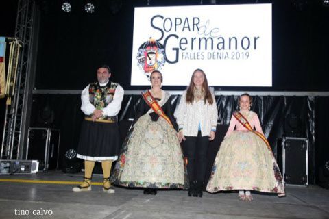 Un millar de falleros y falleras de los once distritos falleros de Dénia se dieron cita el sábado, tras la crida y el pregón, en el tradicional Sopar de Germanor de las fallas de Dénia que se celebró en la carpa de Torrecremada.