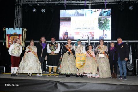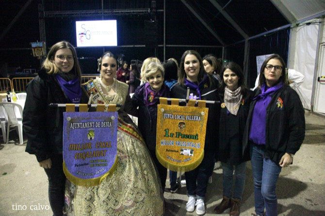 Las falleras mayores de Dénia, Amparo Petrie y Neus Suárez, presidieron la cena y el acto de entrega de los premios a las presentaciones falleras y a los Ninots Indultats de este año.