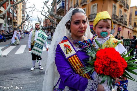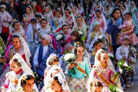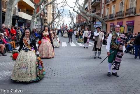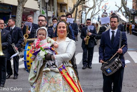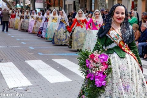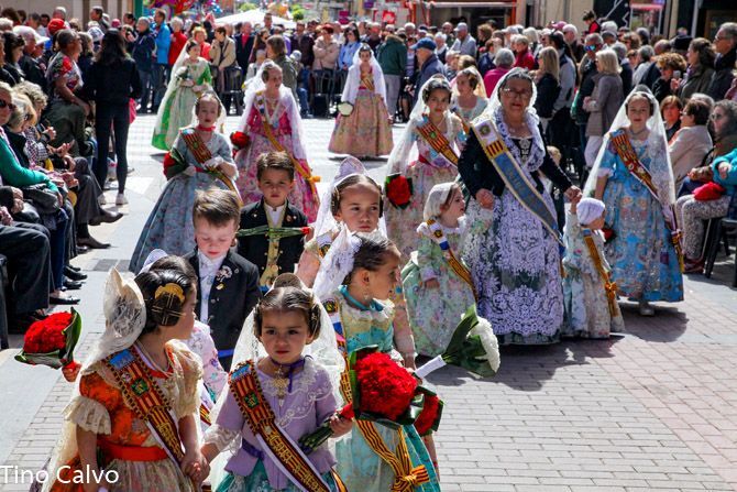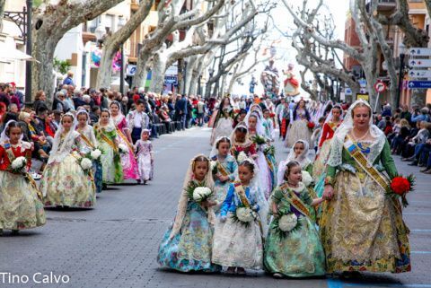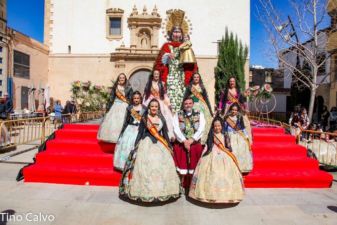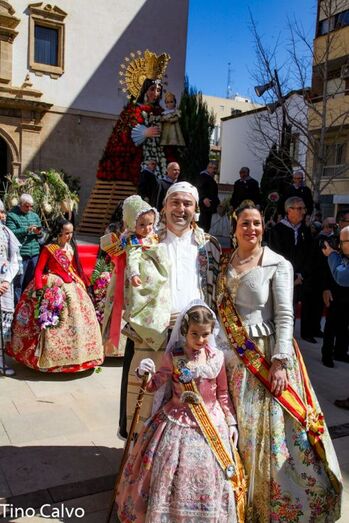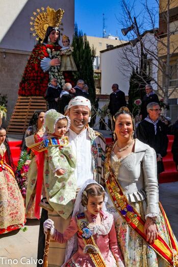 Cerca de 2.000 falleros han participado esta mañana en uno de los actos más emotivos de las fallas, la ofrenda de flores a la Mare de Déu dels Desamparats. Desde Marqués de Campo hasta la plaza del Convent, todas las comisiones falleras han depositados sus ramos y ofrendas a la Virgen. Las últimas en llegar las falleras mayores de Dénia, Amparo Petrie y Neus Suárez.