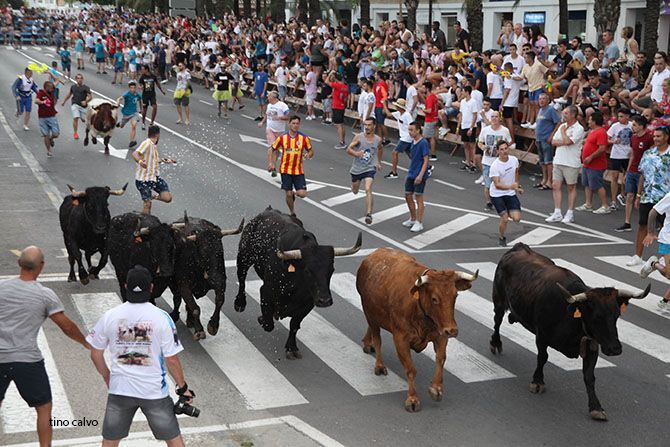 Las ganas de fiesta llenaron las calles de la ciudad durante toda la tarde y noche en la primera entrada de bous y posterior sesión de Bous a la Mar, que estuvieron suspendidos cerca de media hora, porque las dos ambulancias que estaban destinadas en la plaza fueron las que llevaron a los heridos al hospital.