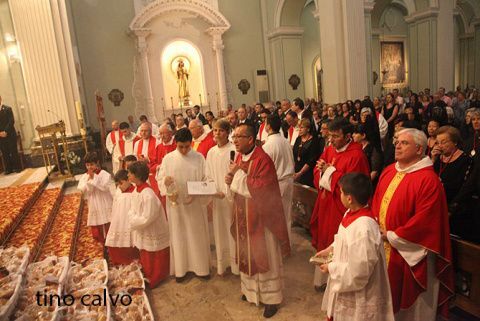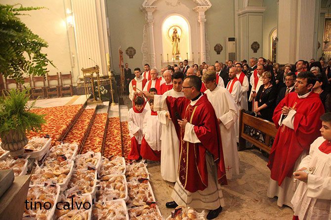 La cofradía, los mayorales y las mayorales, junto a la Junta Local Fallera y numersos vecinos han participado esta mañana en la celebración religiosa en honor a la Santíssima Sang en la parroquia de la Asunción. Tras la celebración religiosa el párroco ha benedicos los panes que han sido repartidos entre los asistentes.