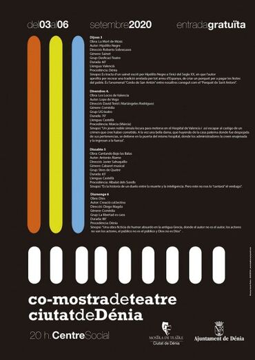 Por otra banda, la situación actual ha hecho que algunas de las escuelas de danza de la ciudad que habitualmente participan en Dansant a la Marina este año no puedan estar. Sí que estarán presentes la escuela Pas de Quatre de Mari Ángeles Signes, Dénia Dance Academy by Miguel Ángel Bolo y la Asociación Teamorfosis, a las que la Concejalía de Cultura quiere agradecer su implicación.