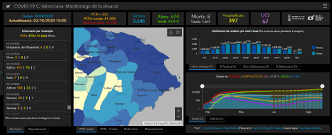 Según ha informado la Conselleria a fecha de este viernes los hospitales valencianos tienen, actualmente, 402 personas ingresadas: 65 en la provincia de Castellón, con 8 pacientes en UCI; 128 en la provincia de Alicante, 35 de ellos en la UCI; y 209 en la provincia de Valencia, 23 de ellos en UCI.