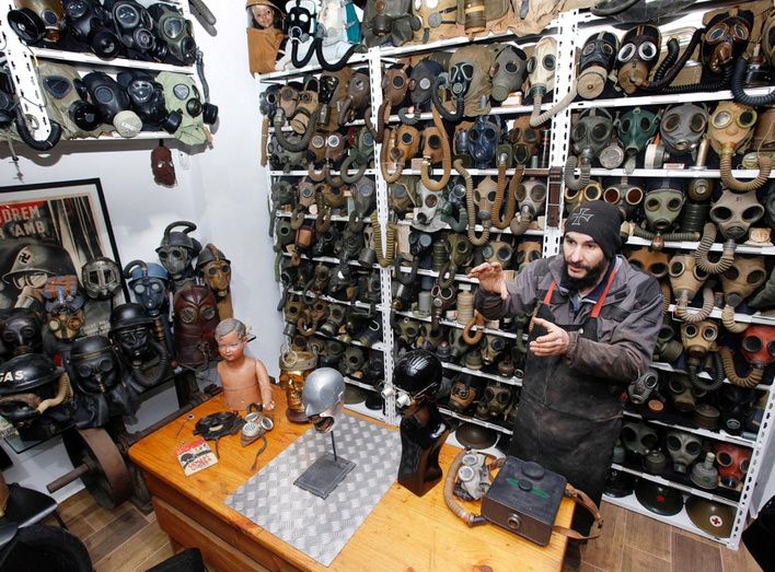 El escultor y artista, Viktor Ferrando, posee en la actualidad la colección más completa que hay en España -y probablemente la mejor en Europa- de máscaras antigás de la Guerra Civil española y de la 1ª y 2ª guerra mundial, así como de otros muchos conflictos bélicos.