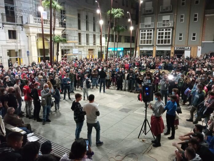 Al grito de ‘Llibertat per als joves’, un millar de personas se han manifestado este viernes en la plaza del ayuntamiento de Pego, reclamando la libertad para los jóvenes antifascistas de la localidad, para los que la Fiscalía pide de 6 a 9 años de prisión por los hechos ocurridos tras el partido del equipo local contra el Gandía, el año pasado.
